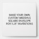 Make your own custom modern square envelope for 5.25" wedding invitations. Click the button to edit the design to customize them completely by adding an address on the front, and a return address on the back, changing the fonts, colours, placement, or even adding a photo inside.