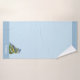 Cute little bird on light blue Towels. Text can be personalized, Text and image on just one side.