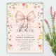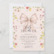 Modern Cute Pink Bow Wildflower Girl Baby Shower Invitation