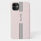 Custom initial trendy stripe barely blush on pink background iphone case, perfect for birthdays or any special occasion. This custom case allows you to add a initial, making it a unique and personalized gift. It combines modern style with functionality.