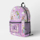 Modern Cute Unicorn and Rainbow Purple Monogram Printed Backpack
