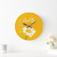 Modern Daisy Wildflowers Custom Monogram Large Clock