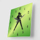 Pretty green background with a lady dancer tipping her hat. A soft shoe tap dancer.