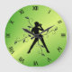 Modern Dance Green w Black Numerals Large Clock