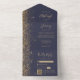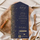 Modern Dark Blue Gold Glitter QR Code Wedding All In One Invitation