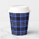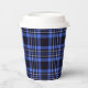 Tasses en papier plaid modernes dans les tons bleus avec accents noir et blanc.