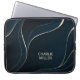 Modern Dark Blue Wave Background & Custom Name Laptop Sleeve