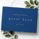 Modern and elegant wedding guest book with the bride's and groom's name in real foil. The dark blue background colour can be changed in the design tool.