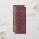 The left-hand edge of this elegant modern wedding program features a gold faux glitter design. The customizable text combines pale gold-coloured handwriting, copperplate and italic fonts on a dark burgundy background.
