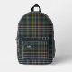 Modern Dark Green Check Plaid Monogram Initials Printed Backpack