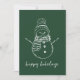 Modern Dark Green Simple Snowman Outline Holiday Card