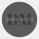 Modern Dark Grey & Black Editable Name & Monogram Classic Round Sticker