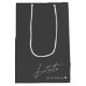 Custom-designed bridesmaid gift bag featuring modern minimalist dark grey and white design.