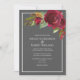 Modern Dark Grey Linen Burgundy Floral Wedding Invitation