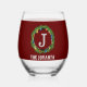 Modern dark red grey monogram stemless wine glass