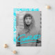 Modern graduation announcement featuring the graduate's vertical photo with "Grad" in bright turquoise handwritten lettering with a dash below. Personalize the trendy photo graduation announcement by adding the graduate's name, school name, and graduation year. The announcement reverses to display a pattern of turquoise and white dashed brushstrokes.