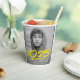 Modern graduation paper cups featuring the graduate's photo with "2025" displayed in yellow, handwritten lettering with a dash below. Personalize the photo graduation paper cups by adding the graduate's name and school name. The design repeats on the back. The personalized graduation paper cups are perfect for both high school and college graduation parties!