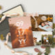 Double sided save the date card with a modern clean typography design focused on the wedding date atop a photo of the happy couple. Add three more photos to the back in a clean collage. Clean save the date template card personalized with photos.