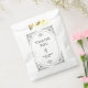 These glamourous black and white wedding favour bags feature a modern spin on classic art deco. An ornate, black geometric frame and ornamentation decorate an elegant white background for a dramatic, vintage wedding look and the classic text says "thank you."