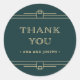 These glamourous wedding stickers feature a modern spin on classic art deco. Ornate, faux champagne gold look geometric borders and ornamentation decorate an elegant emerald green background for a dramatic, vintage wedding look. Classic faux champagne gold typography says "thank you", making these perfect to add to your wedding favours.