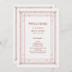 These glamourous wedding programs feature a modern spin on classic art deco. An ornate, festive red geometric frame and ornamentation decorate an elegant very light silver/white background for a dramatic, glamourous and vintage 1920's wedding look that is perfect for your Christmas holiday wedding.