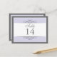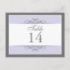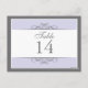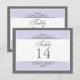 Traditional yet contemporary is the focus of this lovely table card. Soft purple bordered with white and charcoal grey make up the base. The white panel contains the table information. Double-sided design for convenience from any angle. Available in alternate colours with matching products.