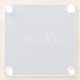 Modern and elegant deep blue bokeh design glass coaster with the text "cheers" in purple script handwriting. Easy to customize with your personal message. Text colour may be changed.