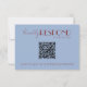 A simple and elegant calligraphy deep red and light blue retro QR Code wedding rsvp card. That has a vintage and modern light blue background with burgundy script and hand written whimsical stylish wordings and scannable QR code . Minimalist and chic with handwritten lettering . It is all editable by clicking on the personalize button.