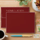 A retro modern hand written bright colorful wedding envelope. Which features bold bride and groom's names in cream color. And personalized return address. On deep red color background. Which suits the whole wedding suite.