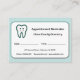 Keep your patients on schedule with these professional dentist appointment reminder cards. Featuring a clean blue background and a simple, modern layout, these cards are designed to be both practical and stylish. The uncluttered design ensures that appointment details stand out clearly, while the professional color scheme conveys trust and reliability. Perfect for dental offices, orthodontists, or hygienists who want to provide patients with a convenient and polished reminder of their upcoming visits. Simply add your own information into the text boxes.