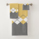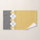 Modern diamond pattern mustard yellow, grey, white bath towel set