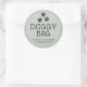 Modern and fun doggy bag thank you sticker for coming to dog pawty with dog paw prints.