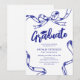 Celebrate your graduate's milestone with these graduation party invitations that blend a timeless white backdrop with a modern blue sketched bow and ribbon border. Coupled with a customizable text template, these invitations are a beautiful way to commemorate this life-changing event.