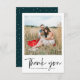 Trendy and modern teal and white dots with hand lettered script photo thank you note card.