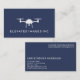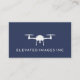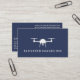 A minimal business card suitable for an aerial drone pilot photographer. The modern & stylish design features a white drone logo on the front with a navy background and space for your business name. On the back your name, contact information, & the option to add a tagline or services offered.