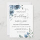 Modern Dusty Blue Chic Floral Gold Frame Wedding Invitation