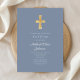 Personalized Modern Dusty Blue Cross Boy Baptism Invitation