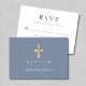 Personalized Modern Dusty Blue Cross Boy Baptism RSVP Card
