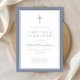 Modern Dusty Blue Cross Boy First Communion Invitation
