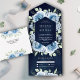 Modern Dusty Blue Floral Bouquet Navy Blue Wedding All In One Invitation