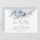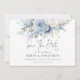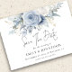 Modern Dusty Blue Florals QR Code Wedding. Available digitally and printed. Gorgeous florals in summery light blue and white and an elegant set script for Save The Date. The rest of the text you can easily personalise with your details. Add your QR code to your wedding website on the back or delete this and the text on the back if not required.