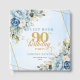 Modern Dusty Blue Flowers Script 90th Birthday Guest Book