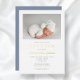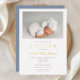 Personalized Modern Dusty Blue Gold Script Photo Boy Baptism Foil Invitation.