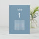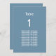 Modern Dusty Blue Guest Names Table Card, easy to personalize in the online personalization template in order to show the table number for the appropriate table and the guest names for that table. The design copies across to the other side of the card automatically so as to help guests to find their table from either side of the table. Featuring a simple plain modern minimalist design layout, this stylish table card incorporates space around the text elements to allow for choice of display methods such as hanging or framing the card.