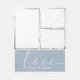 This one of kind design fleece blanket features 3 of your favourite photos in a grid with solid dusty blue block with script love and your names below.