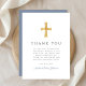 Modern Dusty Blue Religious Boy First Communion Thank You Card