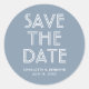 Modern dusty blue wedding save the date sticker/envelope seal. Easily edit online with your wedding details.