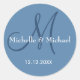 Modern Dusty Blue Wedding Monogram Name Classic Round Sticker