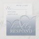 Simple and elegant RSVP card with large calligraphy, with heart detail. Text in faux metallic silver on a dusty blue background. All you need to do is change the date. Please see other items in this collection.