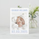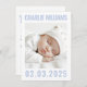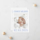 White or any colour thank you notecard with your photo and teh baby's name and date of bith on the front. On the back is customizable text "thank you" in a modern sans serif font and a custom message. You can change all colours, move and resize elements with the design tool.